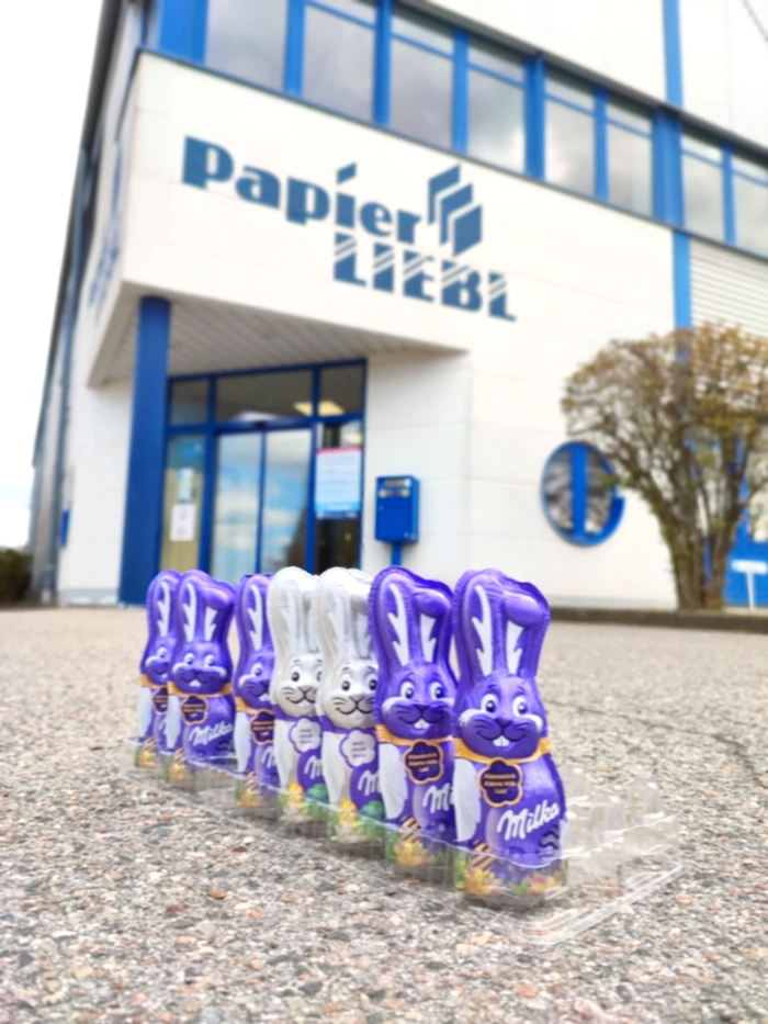 Da war wohl eine ganze Osterbande unterwegs: Über Nacht wurden bei Papier LIEBL die Schreibtische besucht und an jedem Platz ein süßer Schokoladengruß hinterlassen. 🍫