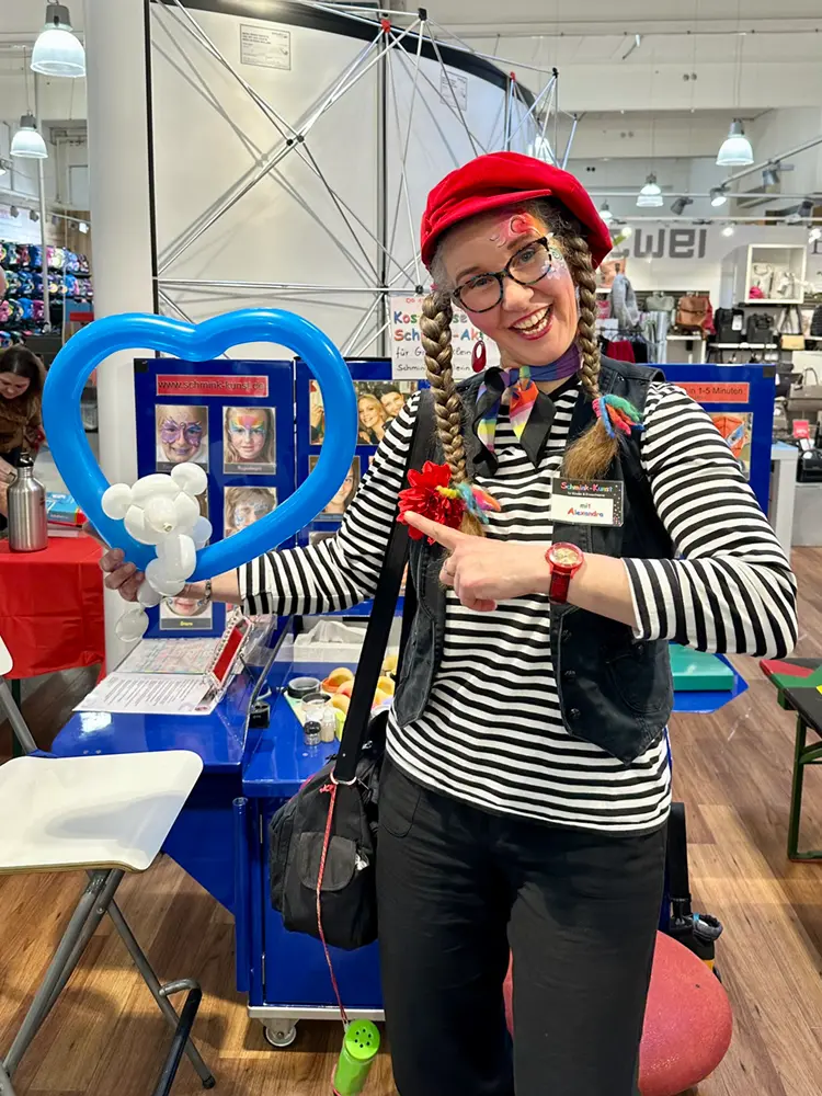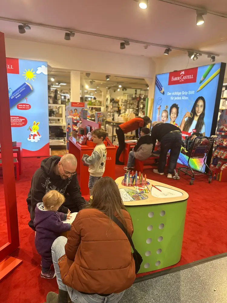 Mit strahlenden Gesichtern ließen sich die kleinen Gäste von Alexandra in kleine Kunstwerke verwandeln und nahmen mit Freude ihre bunten Luftballontiere entgegen. Ein besonderes Highlight: Ein Graffiti-Künstler personalisierte SATCH Rucksäcke und Mäppchen und machte sie zu echten Unikaten! Das Faber-Castell Maskottchen „Grippi“ verteilte fleißig die neuen Stifte, und in der Schreiblernberatung von STABILO erhielten Eltern und Kinder wertvolle Tipps für einen erfolgreichen Schreibstart. Nach so viel Action konnten sich die Kinder mit einer Tüte Popcorn stärken – natürlich kostenlos!